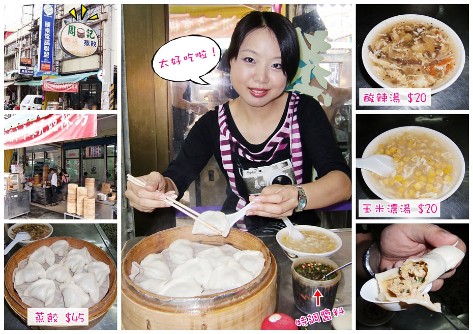 蒸餃飽滿汁多,店家特製的蔥蒜醬很讚!玉米濃湯整碗都是玉米...